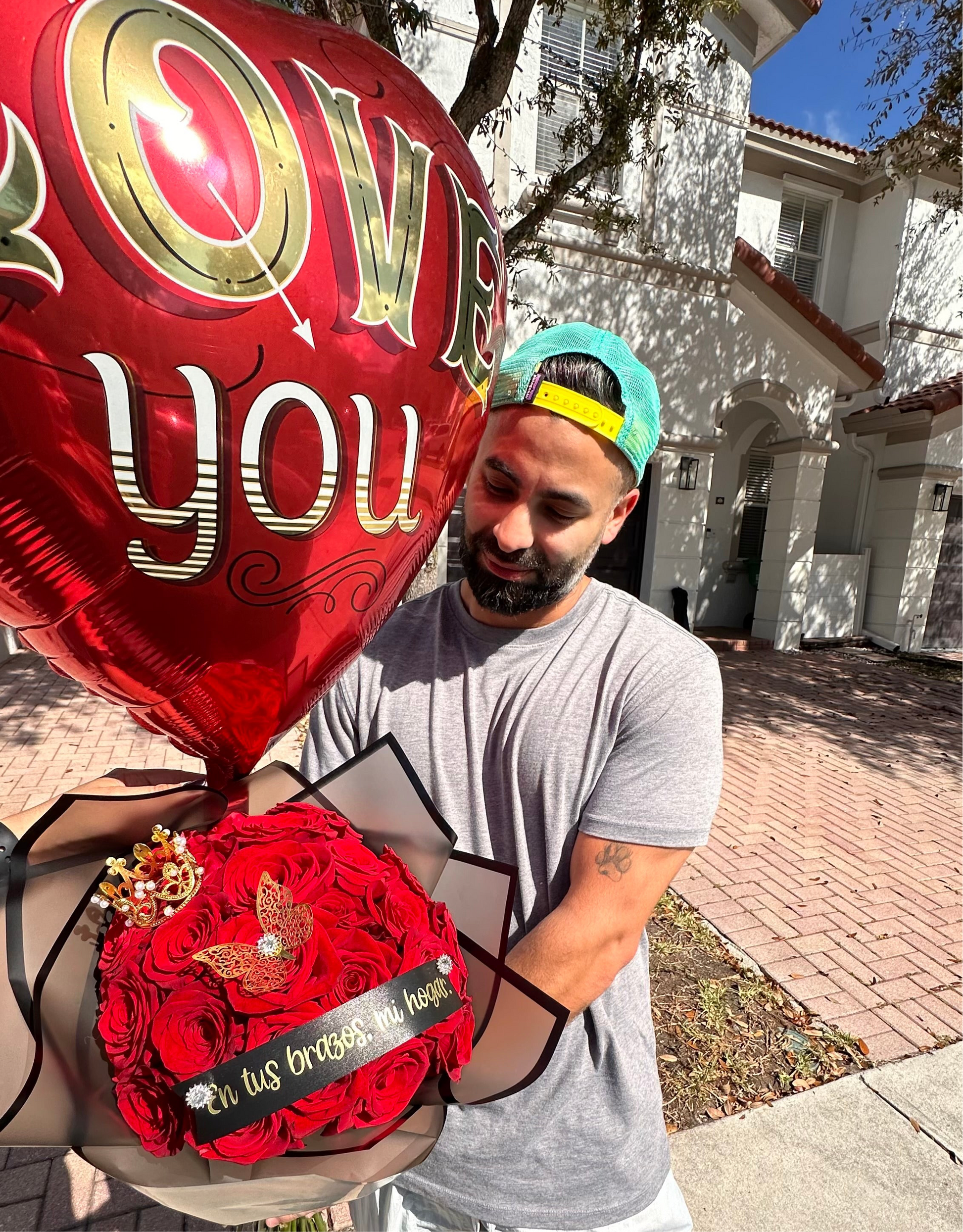 Go big on love with our stunning Luxury Buchón, featuring 25 premium Freedom Roses—the ultimate symbol of passion and romance. This breathtaking bouquet is complemented by a giant heart-shaped balloon, available with messages like “Te Amo” or custom phrases to make your gift even more special.
