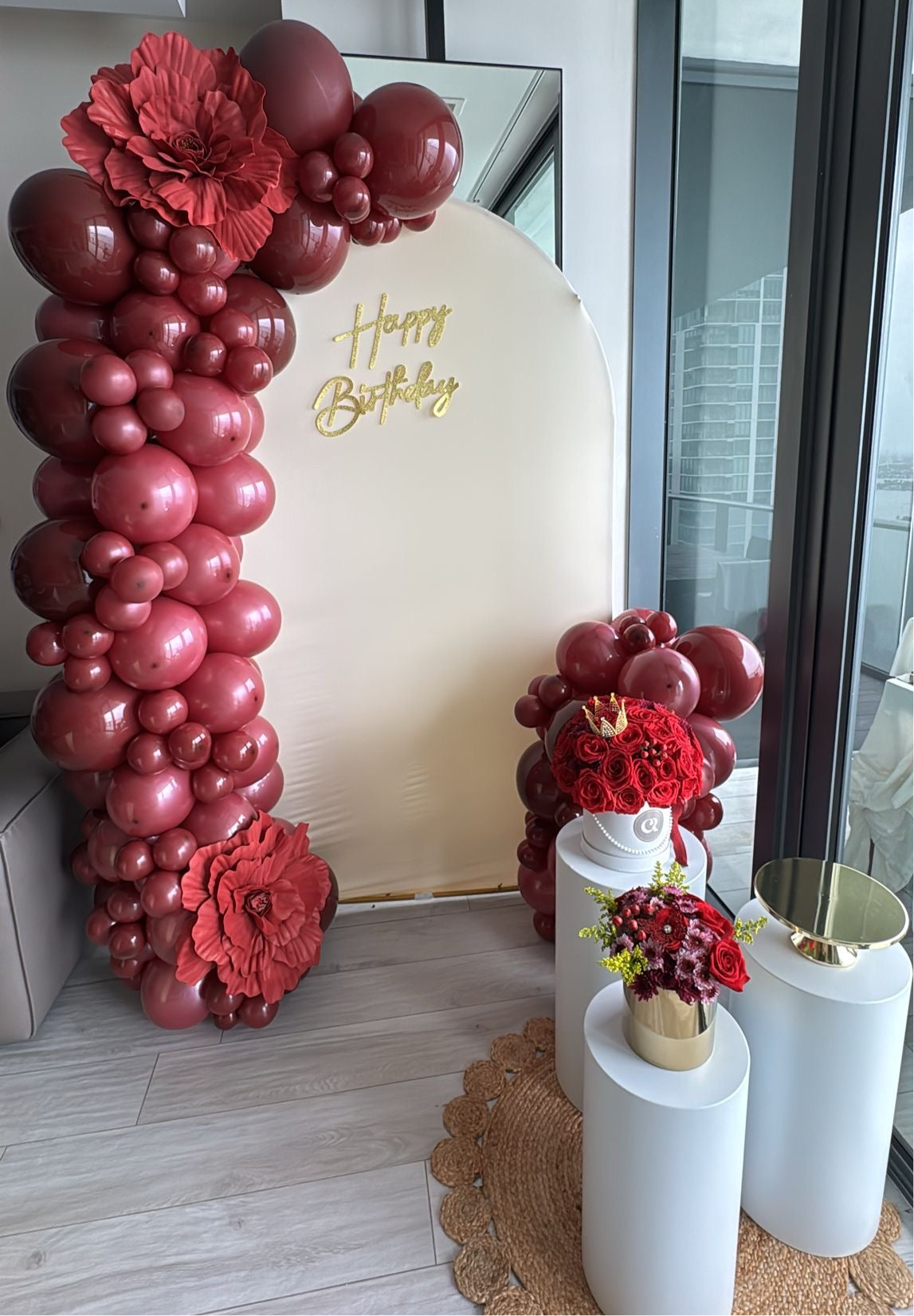 Celebrate like a queen with our ultra-elegant Burgundy Birthday Balloon Setup featuring a 7.5 ft luxe garland and matching floral-style backdrop. Perfect for birthdays, fashion-forward celebrations, and unforgettable photo moments.