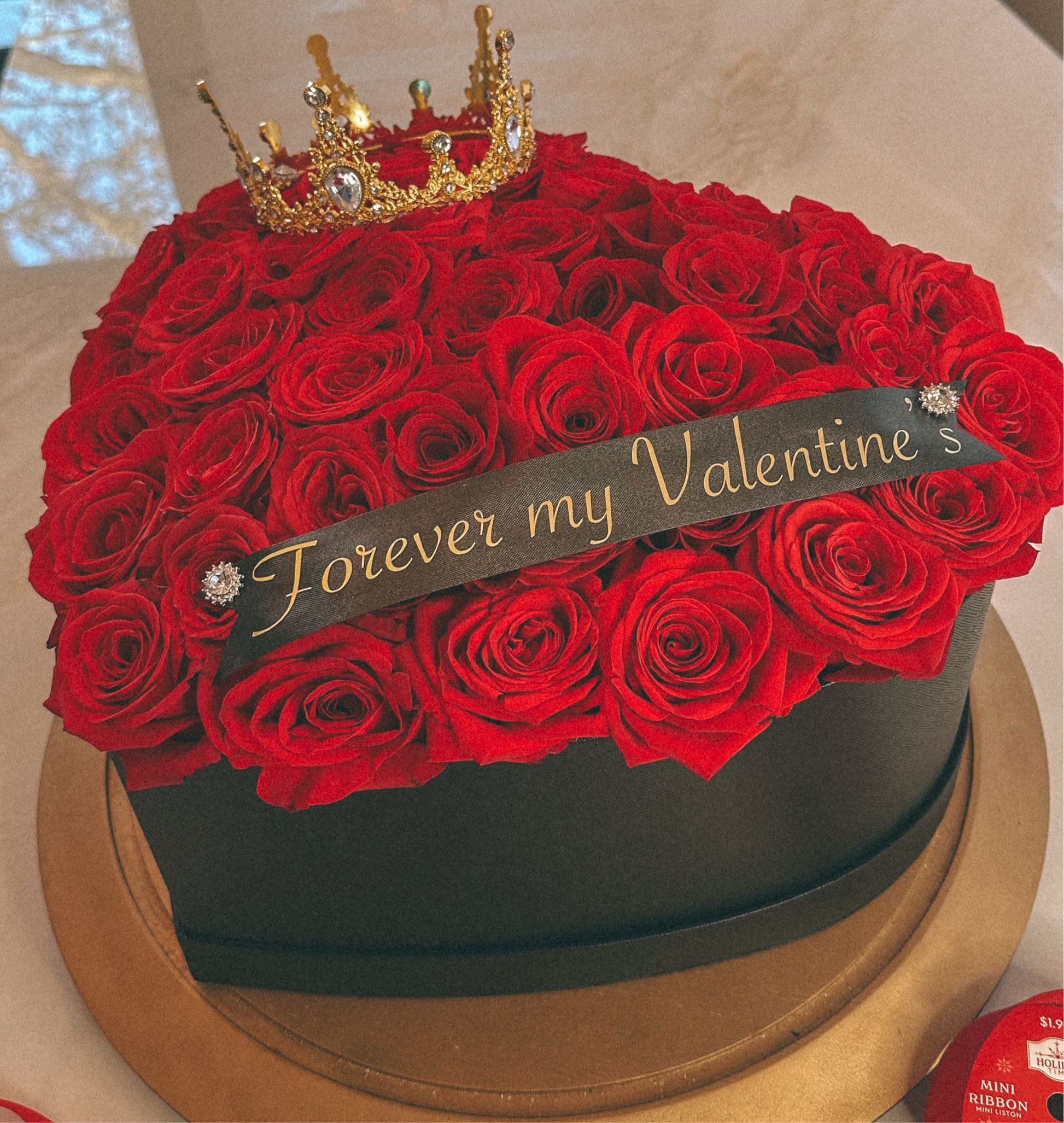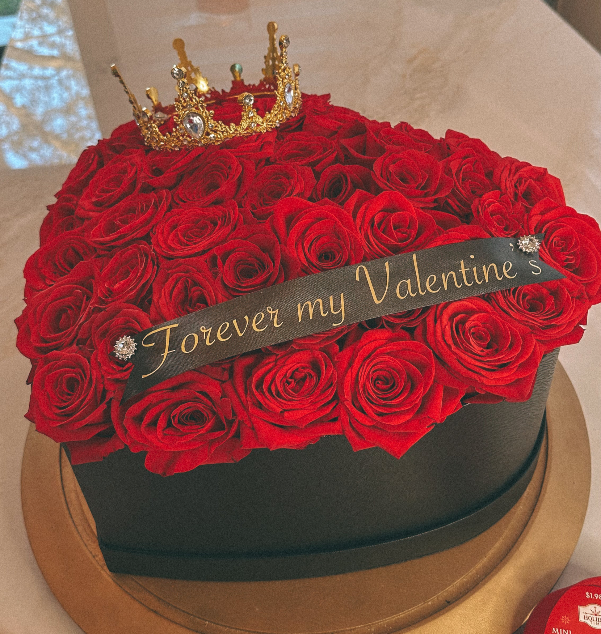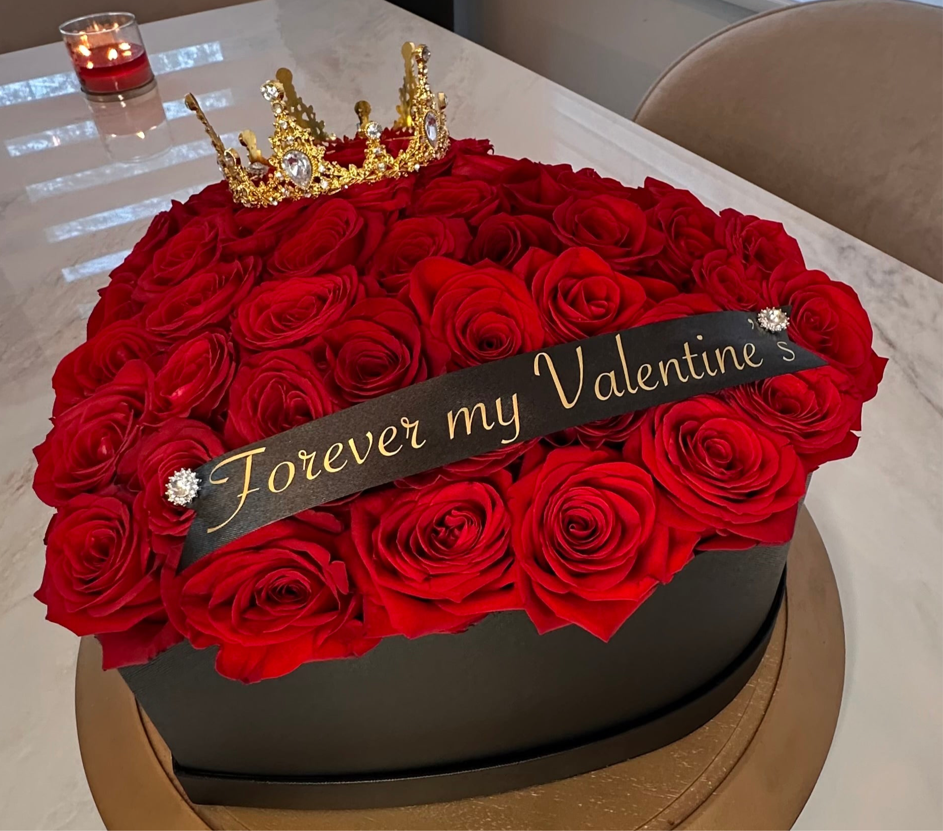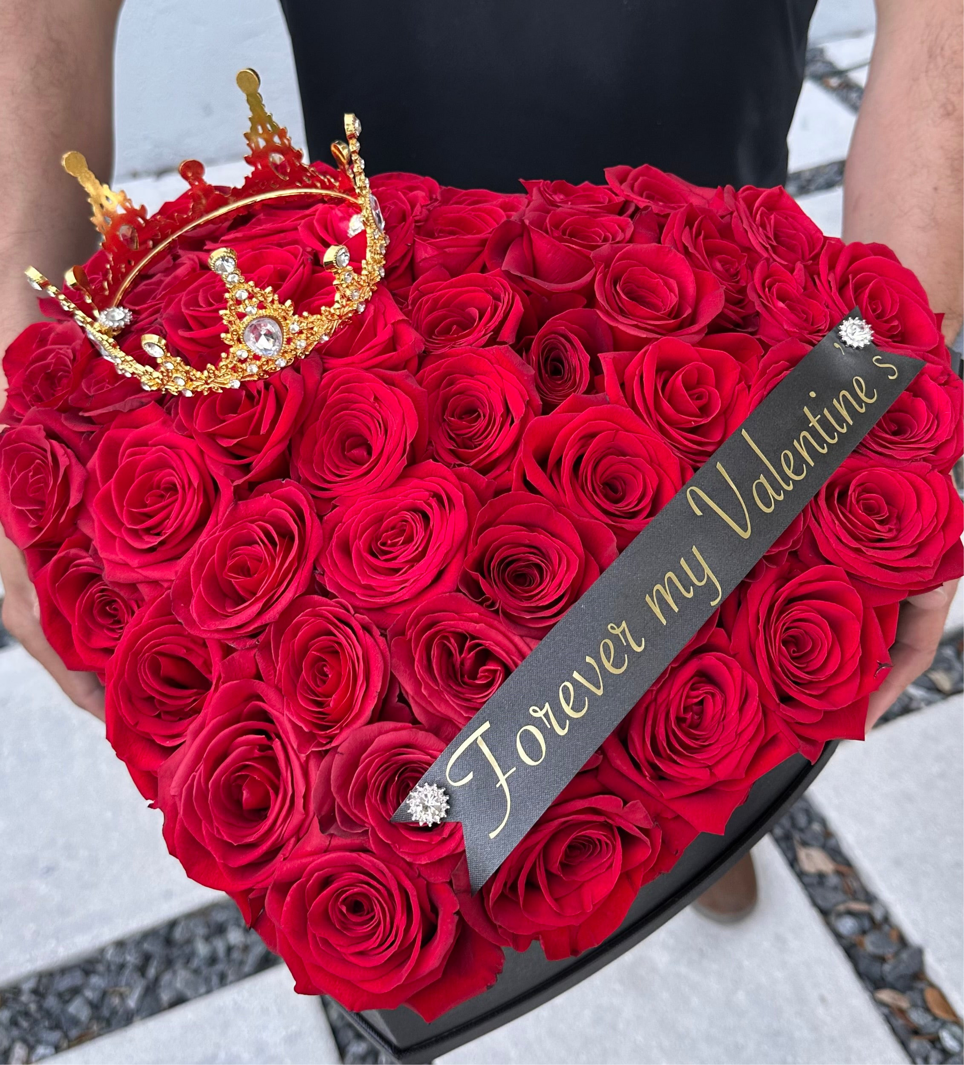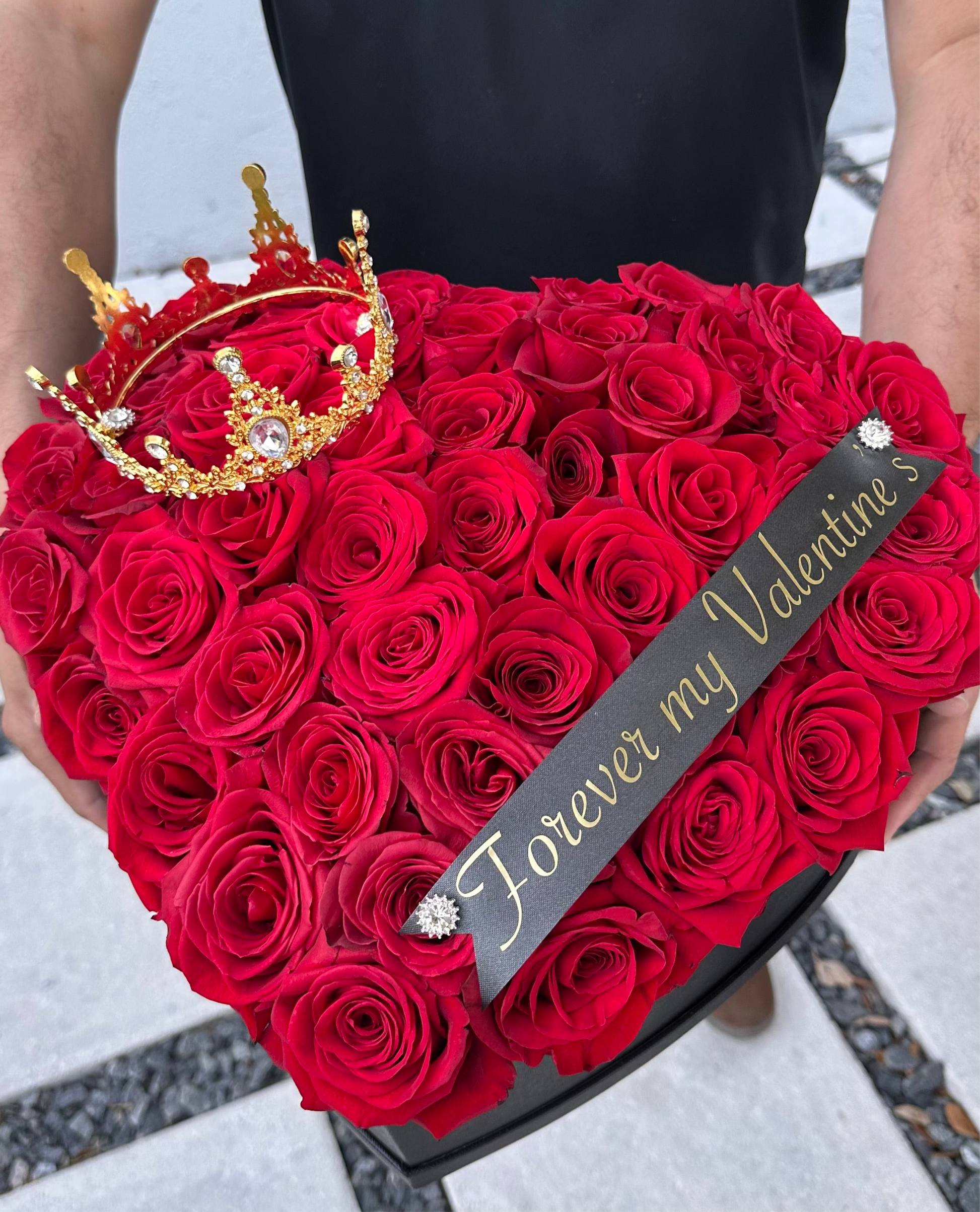 Each box is adorned with a customized ribbon and a delicate crown, adding a regal touch to this unforgettable gift. Whether it’s for Valentine’s Day, an anniversary, or simply to surprise the love of your life, this masterpiece speaks volumes about passion and devotion.